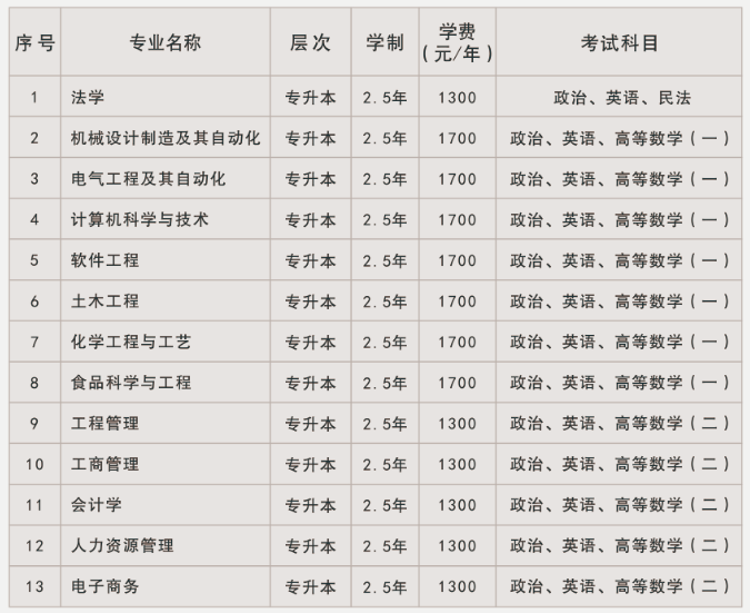 | 专升本 | 理工类 | 政治、英语、高等数学(一) |
