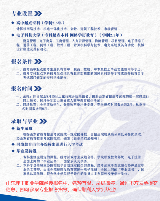 根据山东省教育招生考试院统一规定的分数,由招生院校从高分到低分择优录取。经山东省教育招生考试院批准,颁发〈新生录取通知书》。网络教育由主办院校出题进行入学考试。
