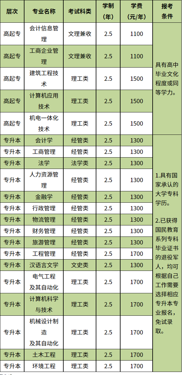 | 高起专 | 1200-1500 | 文科专业学费相对较低,如行政管理等约1200-1300元;理工科专业如计算机应用技术等约1300-1500元 |